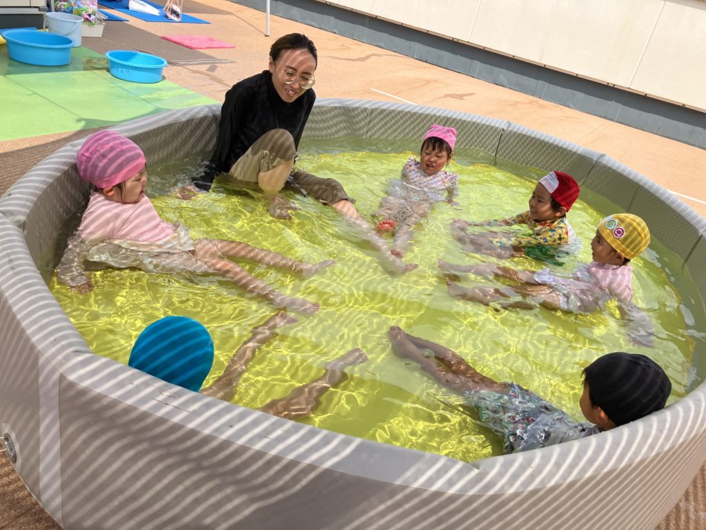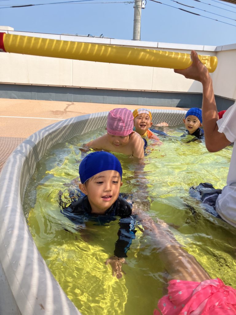 うめ組は大きなプールは初めてです😊水を頭からかぶったり、泳いだりして沢山体を動かしました♪