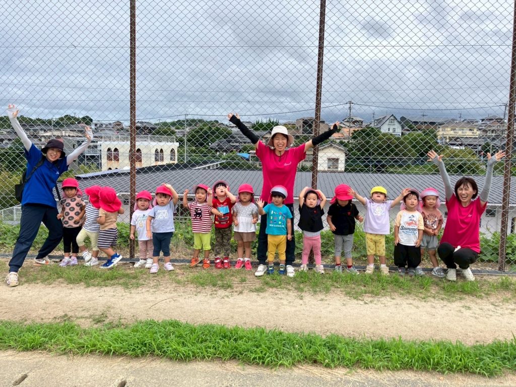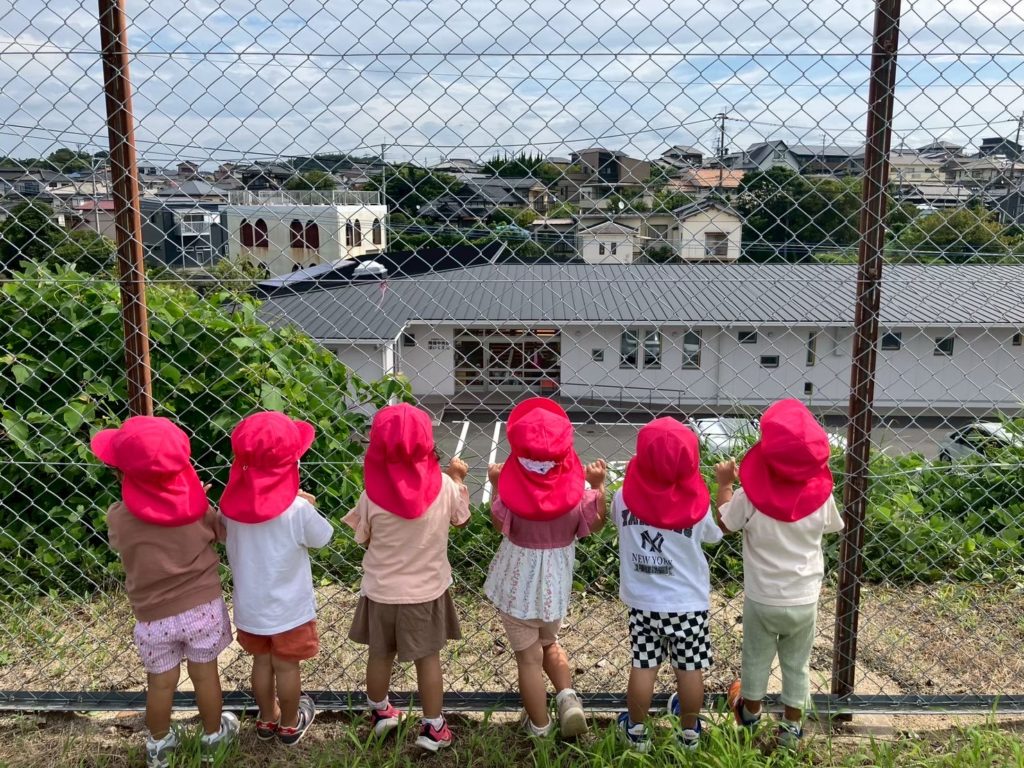 町民グラウンドから保育園が見えるので、お散歩に行くと、必ず「ヤッホー」と元気な声が聞こえてきます(●^o^●)